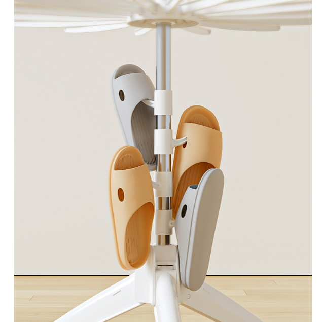 Chất liệu : Thân làm băng inox, đế chân, các thanh treo và móc làm bằng nhựa nguyên sinh dày dặn chắc chắn